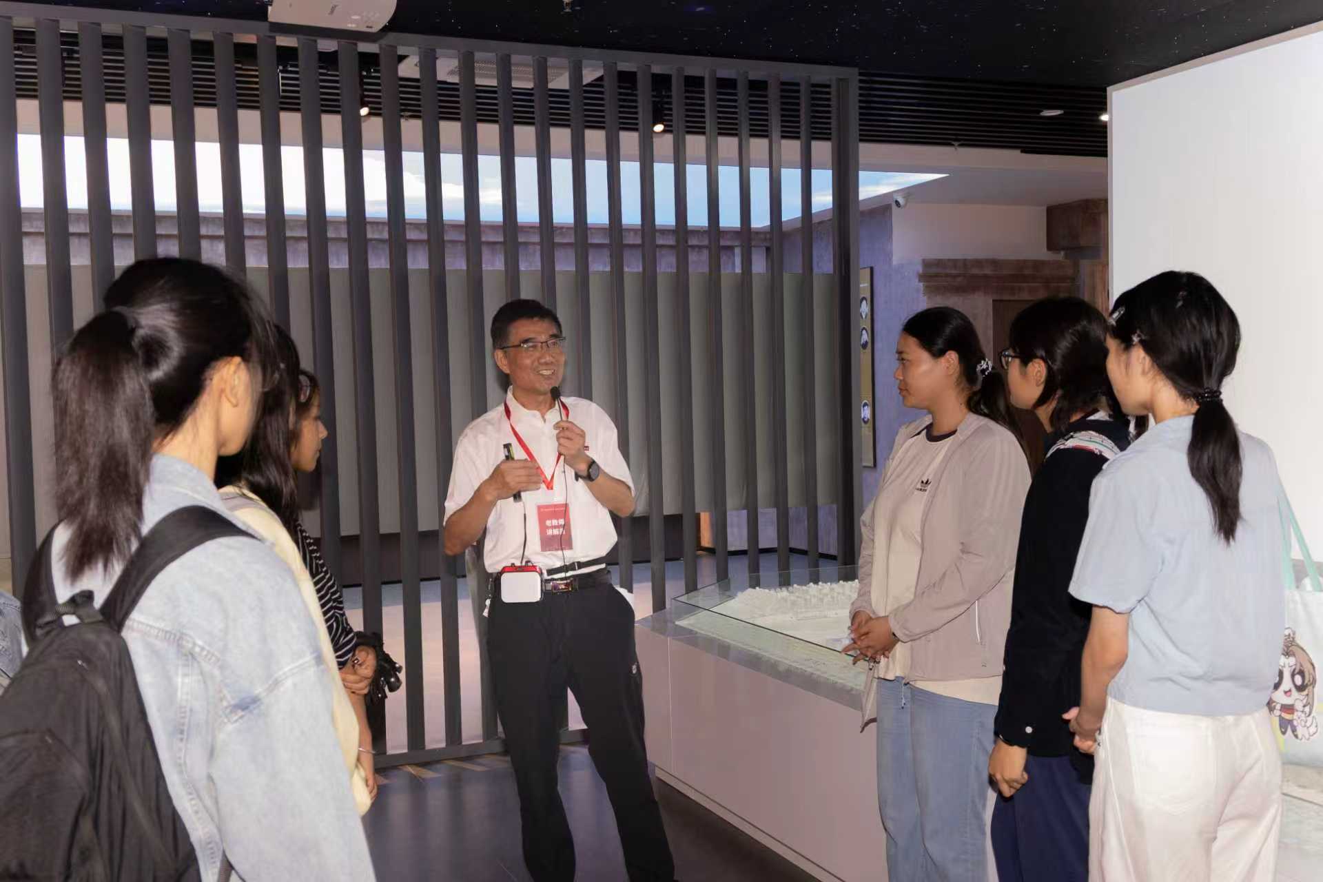 实践教学老教师为新进教职工讲解校史